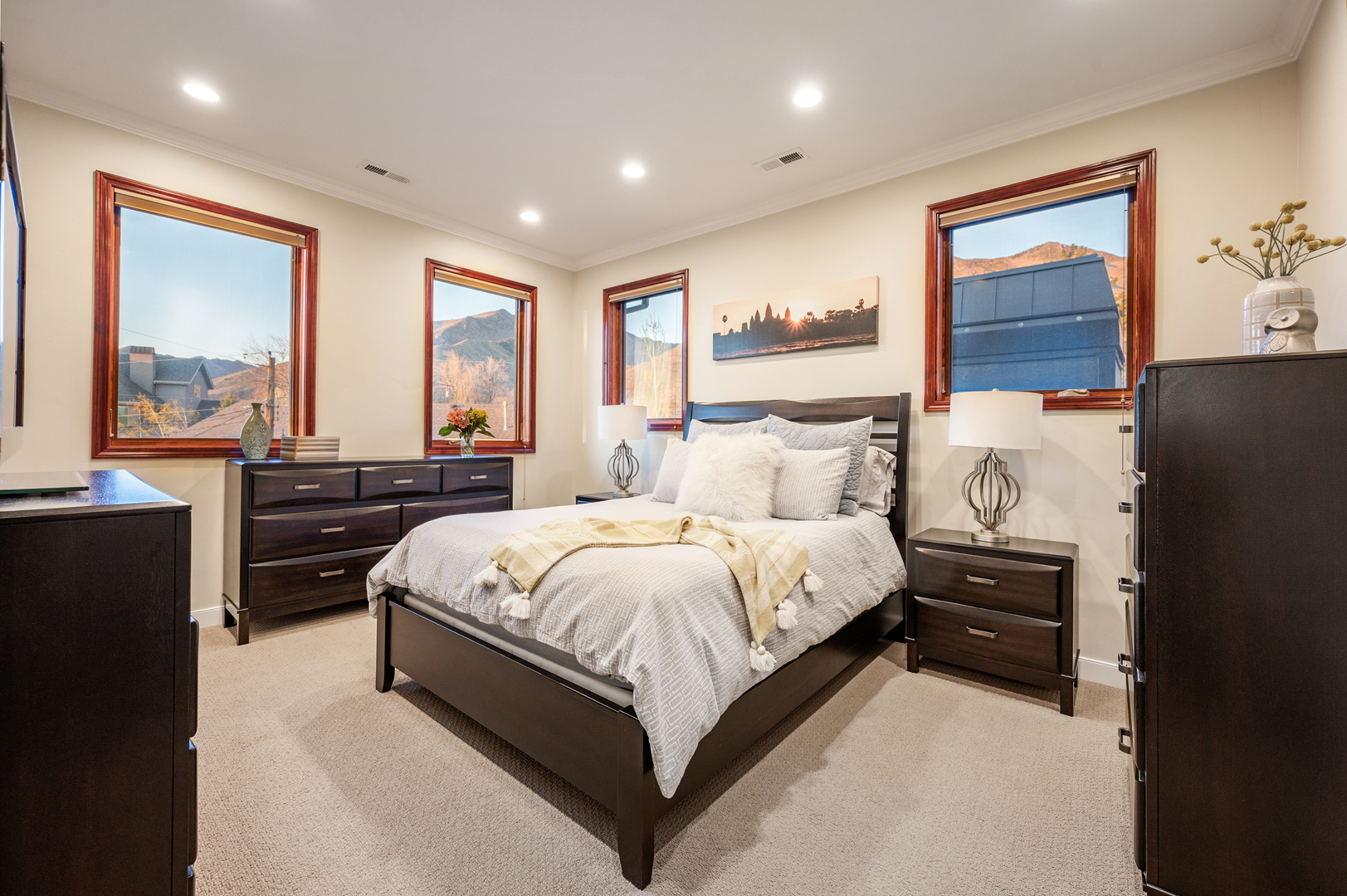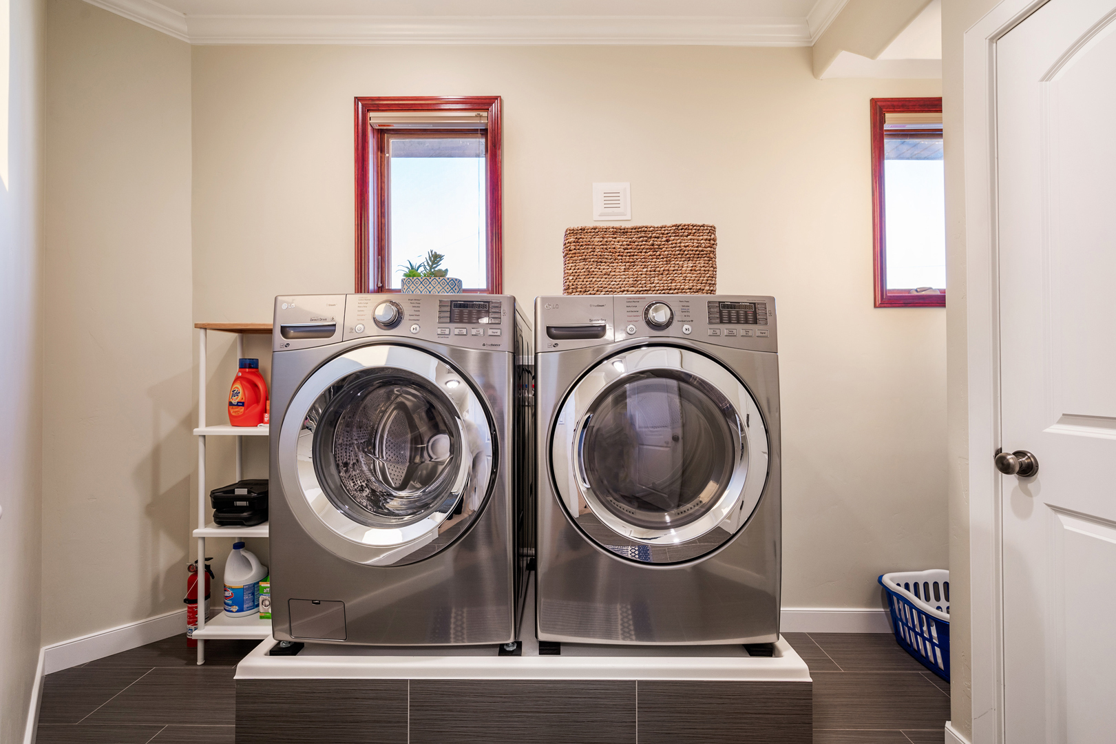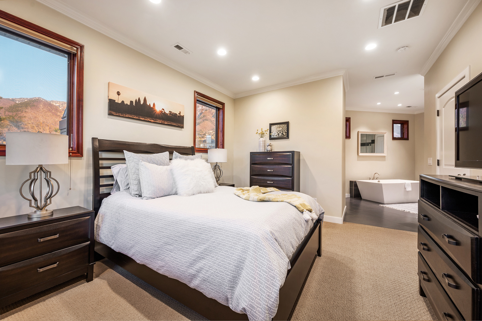 Each of the 3.5 bathrooms boasts high-end elements, including eye-catching tiling in two of the showers. One of the four bedrooms includes double closets, providing ample storage. The primary suite includes a spa-like ensuite equipped with a large enclosed steam shower (double shower heads), separate soaking tub, and water closet.