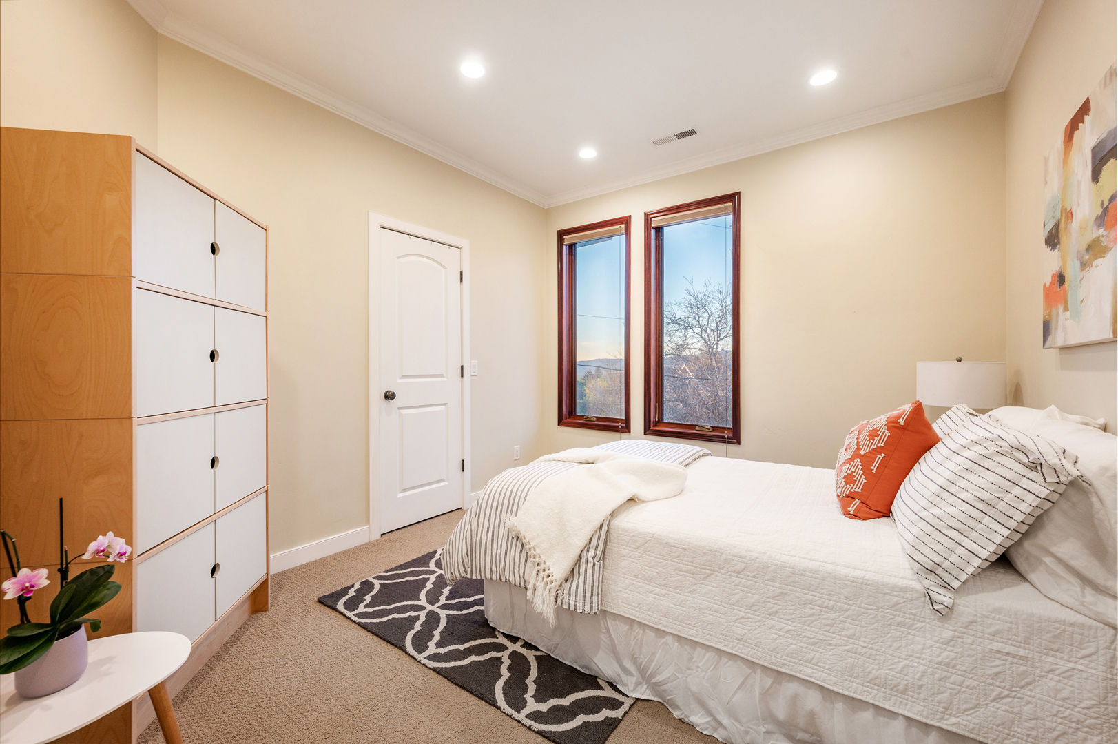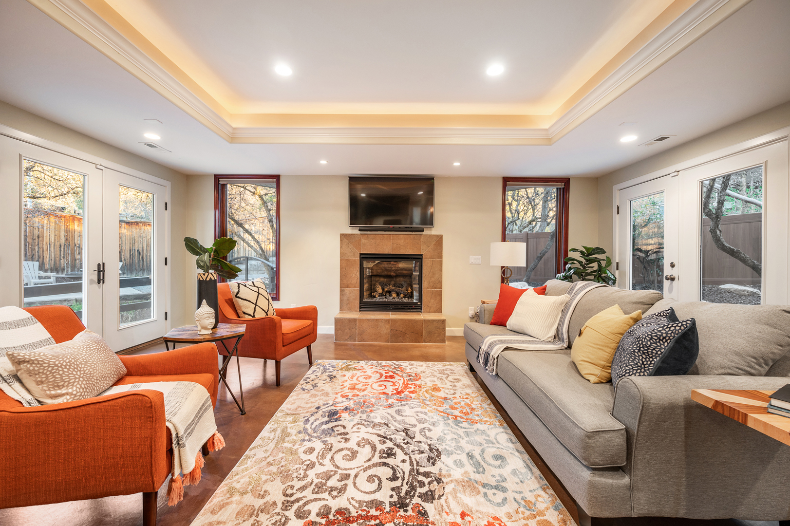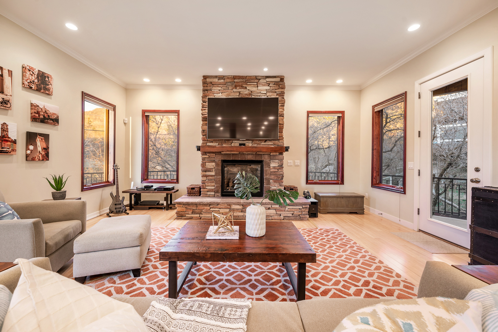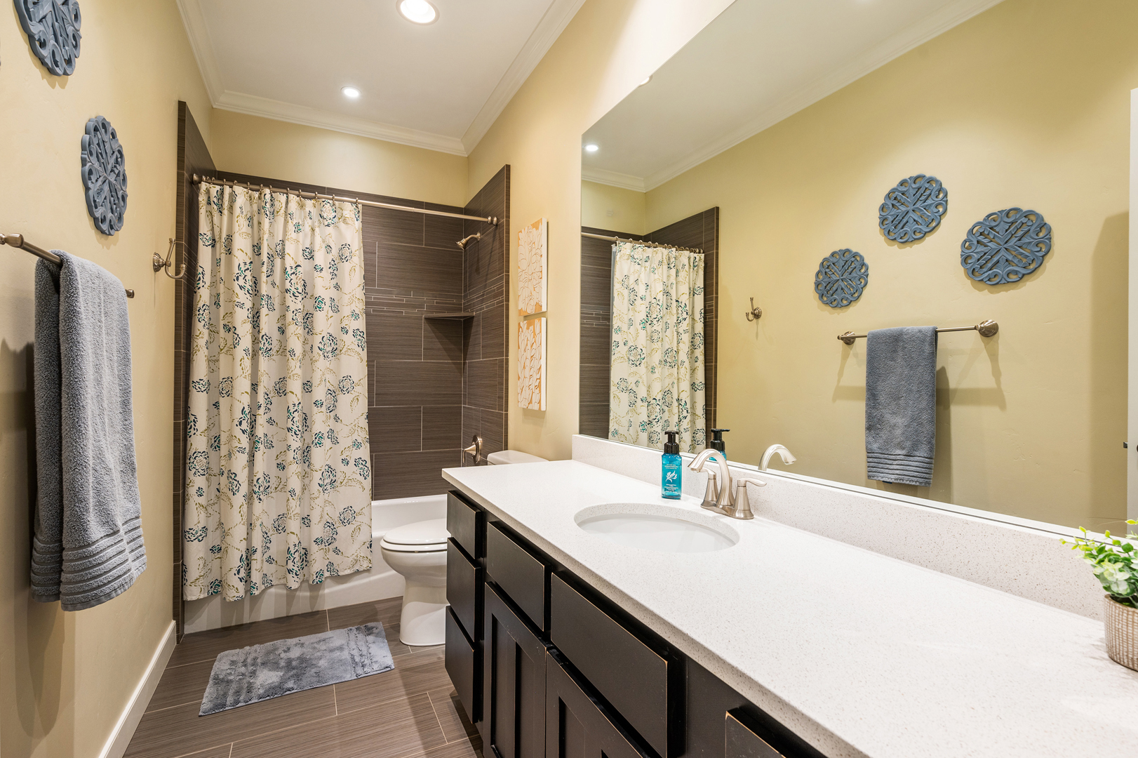 Each of the 3.5 bathrooms boasts high-end elements, including eye-catching tiling in two of the showers. One of the four bedrooms includes double closets, providing ample storage. The primary suite includes a spa-like ensuite equipped with a large enclosed steam shower (double shower heads), separate soaking tub, and water closet.