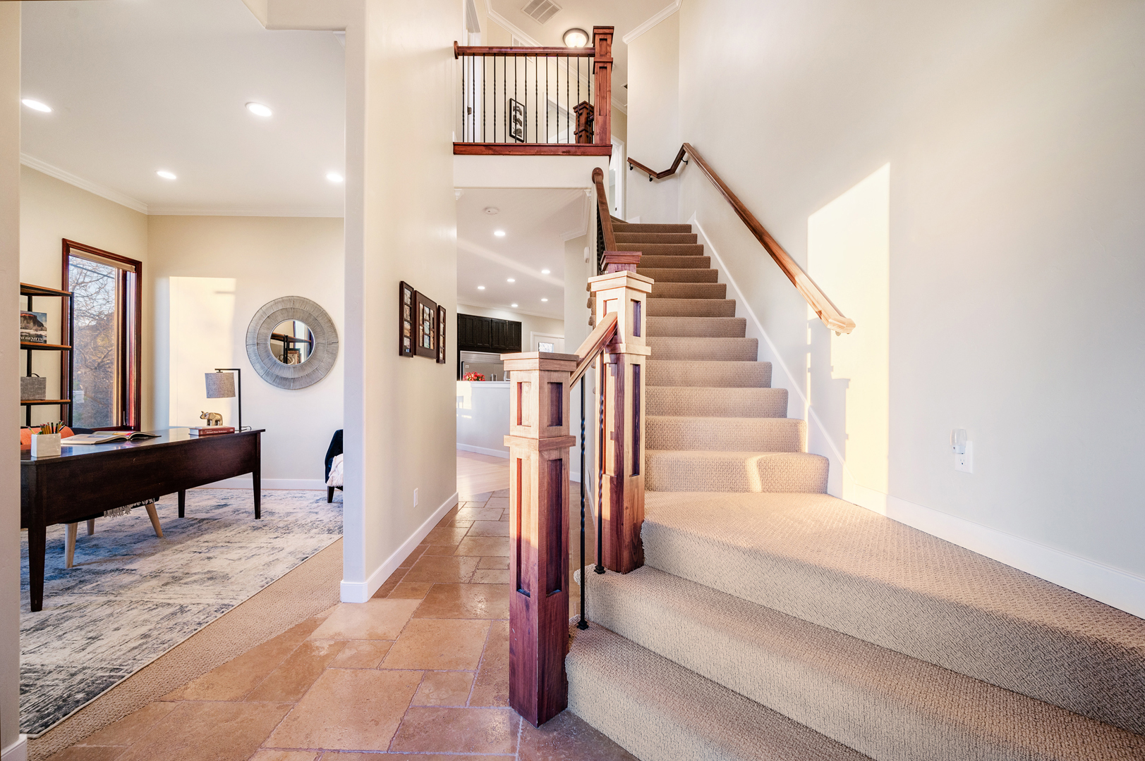 Enjoy a blend of modern luxury and traditional styling in this beautiful and spacious home, located in the desirable Olympus Cove neighborhood of Salt Lake City. When you walk through the front door, you’ll immediately notice the expansive 20-foot entry ceiling as well as the open floor plan and main floor 10-foot ceilings. Off the garage entrance, a nook with storage hooks sits next to the convenient main-level half bath. The wood-framed windows add a touch of interest to the space, while high-quality finishes are found throughout the home.