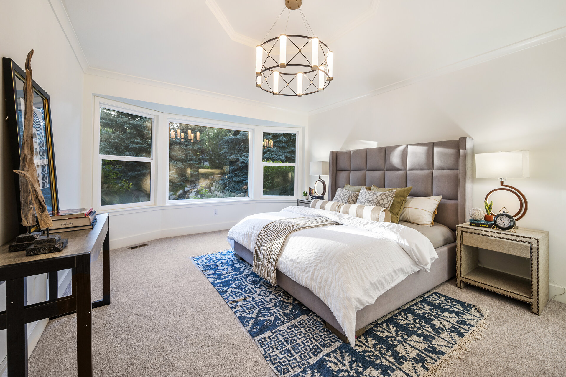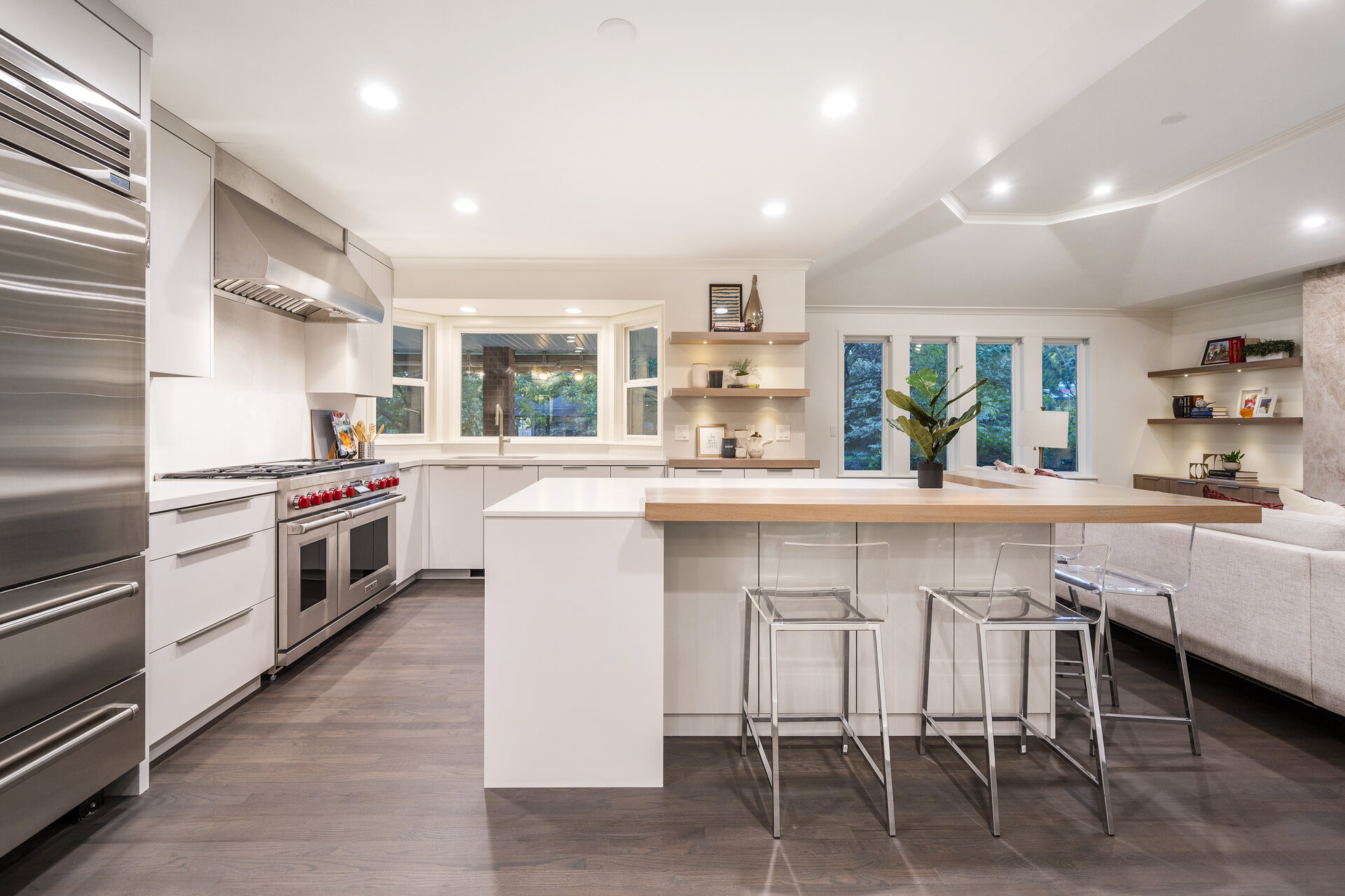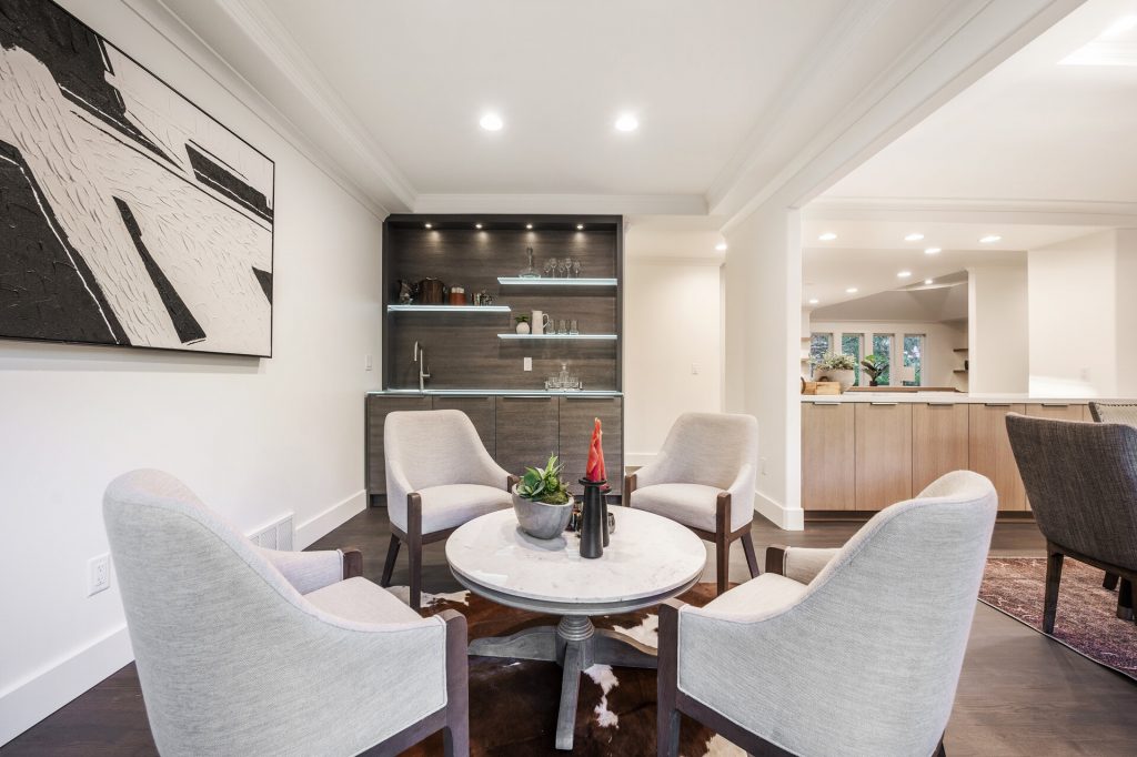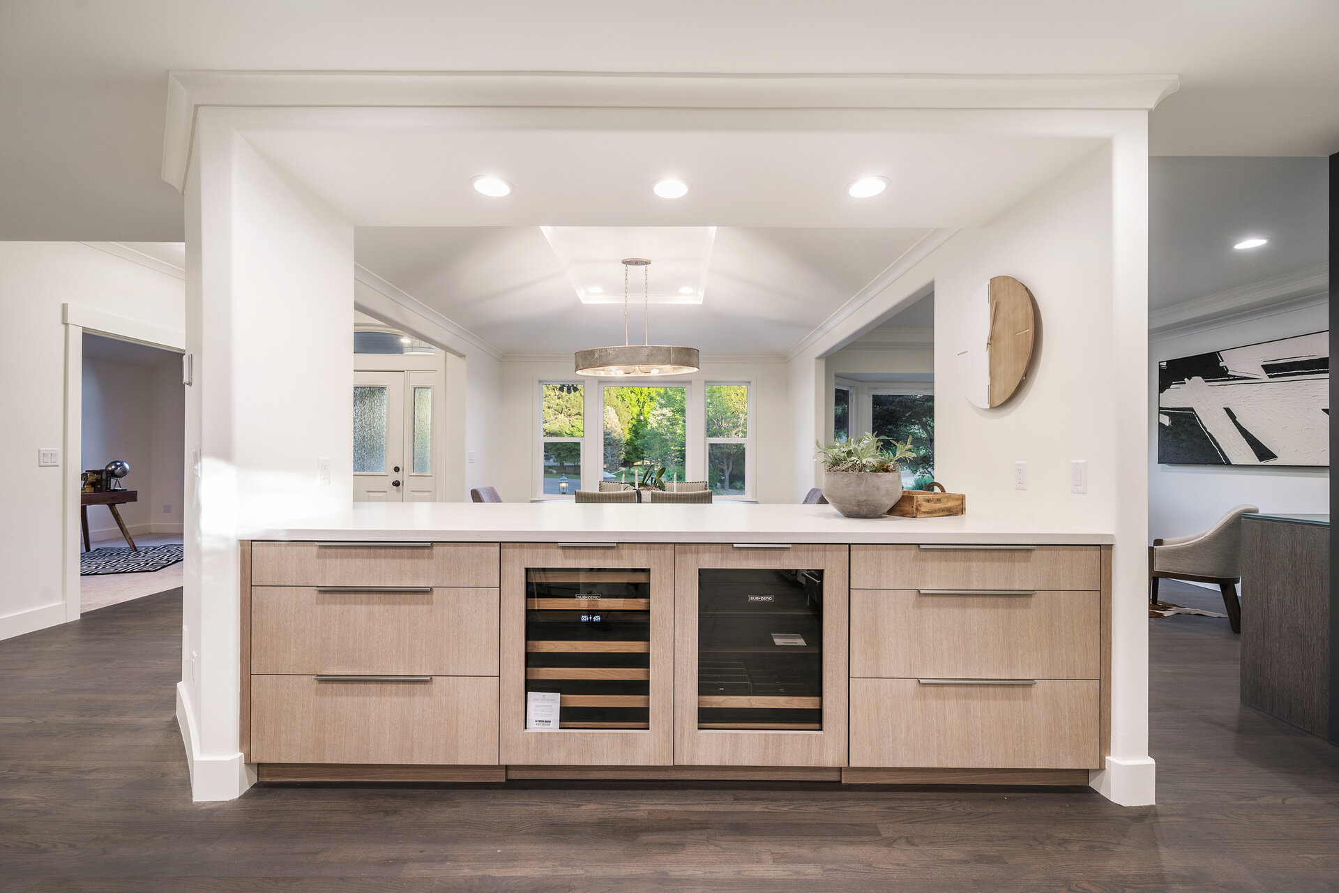 Located on a serene cul-de-sac in the prestigious 24-hour guard gated Pepperwood community. Upon entering the home you'll be wowed by the views out every window and the open airy layout that flows seamlessly from the den to the dining room, wet bar sitting room to the kitchen and living room while showcasing a breathtaking floor-to-ceiling custom marble surround fireplace. The main level of this home has just recently completed an extensive remodel providing you with a modern and lovingly designed masterpiece. The show-stopping, sleek, modern kitchen features top-of-the-line appliances including a Wolf gas range, Viking refrigerator as well as extensive well thought out custom cabinetry ensuring the perfect space for all your storage needs. The exquisite wet bar with its sitting area provides the perfect location for unwinding at the end of any day. While the conveniently located den makes working from home a dream.